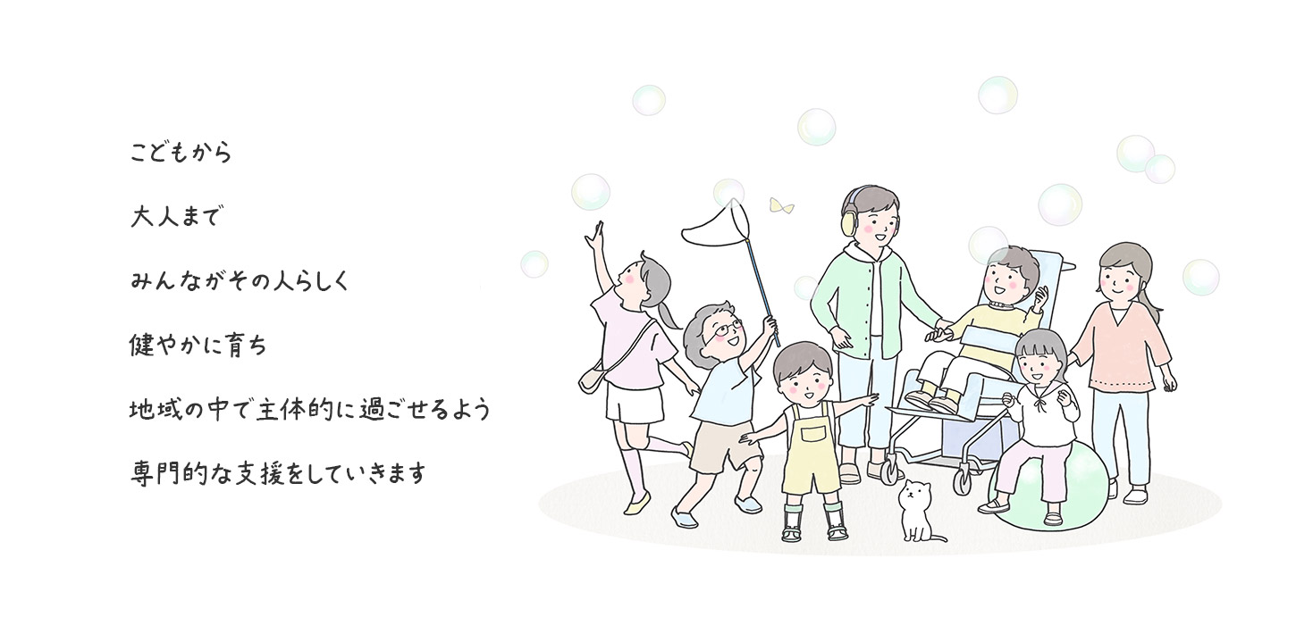 当法人では、放課後等デイサービスや児童発達支援、そして成人支援など障がいのある方へのサポートを提供しています。多職種が連携し、専門性を活かした温かな支援を大切にしています。働く職員にとっても、仕事だけでなくご家庭の事も両立できる環境づくりを重視しています。
