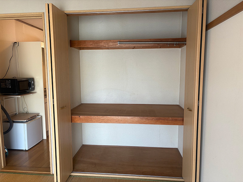 全室日当たり良好。居室には広々としたクローゼットがあり、エアコンも完備しています。(カーテンは防炎カーテンをご用意ください。)